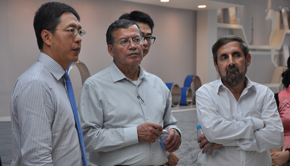 Hilong International Sales Director Liu Song (left) introduces Hilong’s products and services to Minister Pedro Merizalde (middle) in Hilong’s display hall