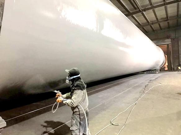 图2:塔筒外部喷涂现场