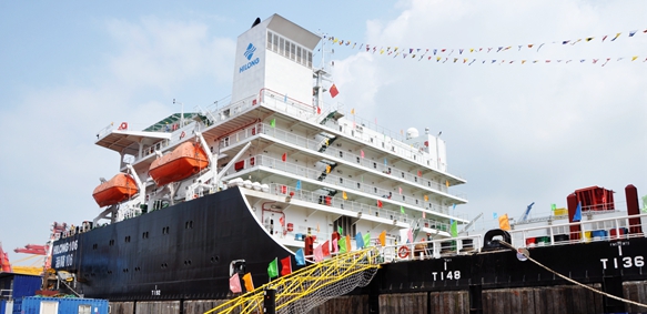 (2014年9月11日,上海)海隆集团于去年底购置的海洋铺管起重船于9月5日实现成功交付并被正式命名为“海隆106”,这标志着海隆集团向海洋工程服务领域进军迈出了坚实的一步。