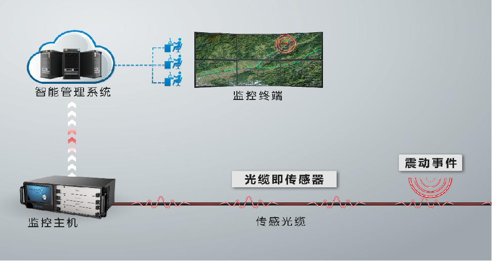 海隆信息管道线路安全预警系统采用先进的光纤传感技术,利用管道同沟光缆作为传感器,实时感应管道沿线的土壤震动信号,通过智能识别分析,对威胁管道安全的机械施工、人工挖掘和自然灾害等事件进行预警和定位,并通知巡线人员赶赴现场查看,防止破坏事件进一步恶化。