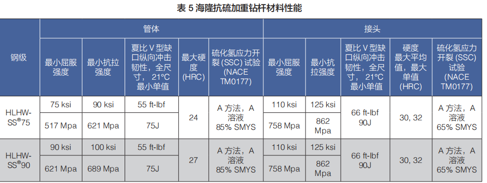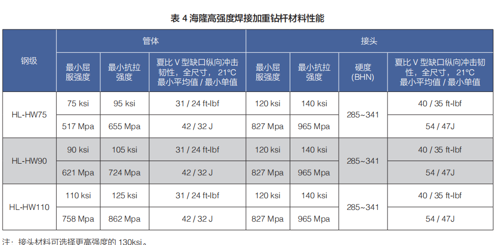 (b)焊接加重钻杆包括:标准强度焊接加重钻杆、高强度焊接加重钻杆、抗硫化氢加重钻杆和海隆特殊扣加重钻杆;