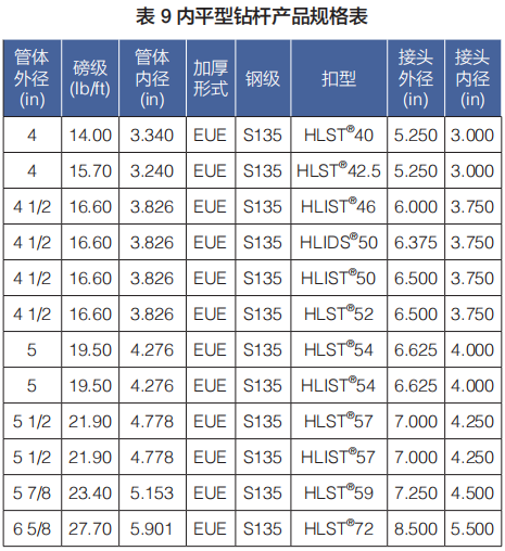 减少压力损耗,增加水力效率是提高钻速的关键。海隆内平型钻杆管体采用特殊的外加厚技术增加加厚区域内径,接头使用海隆特殊扣系列螺纹连接保证较大的水眼直径。加厚端内径、接头内径与管体内径相差无几。